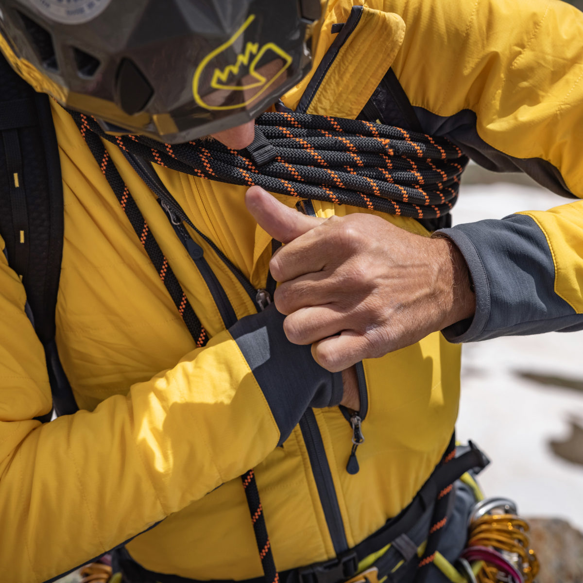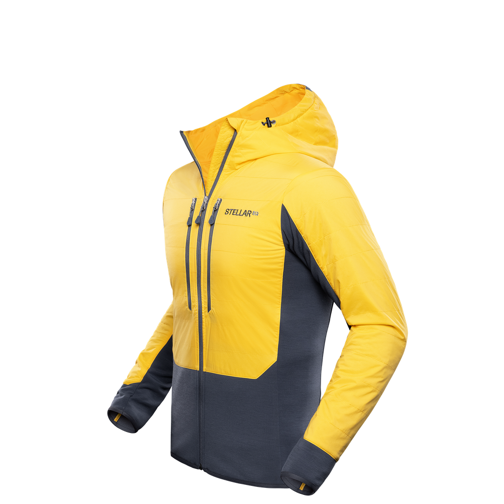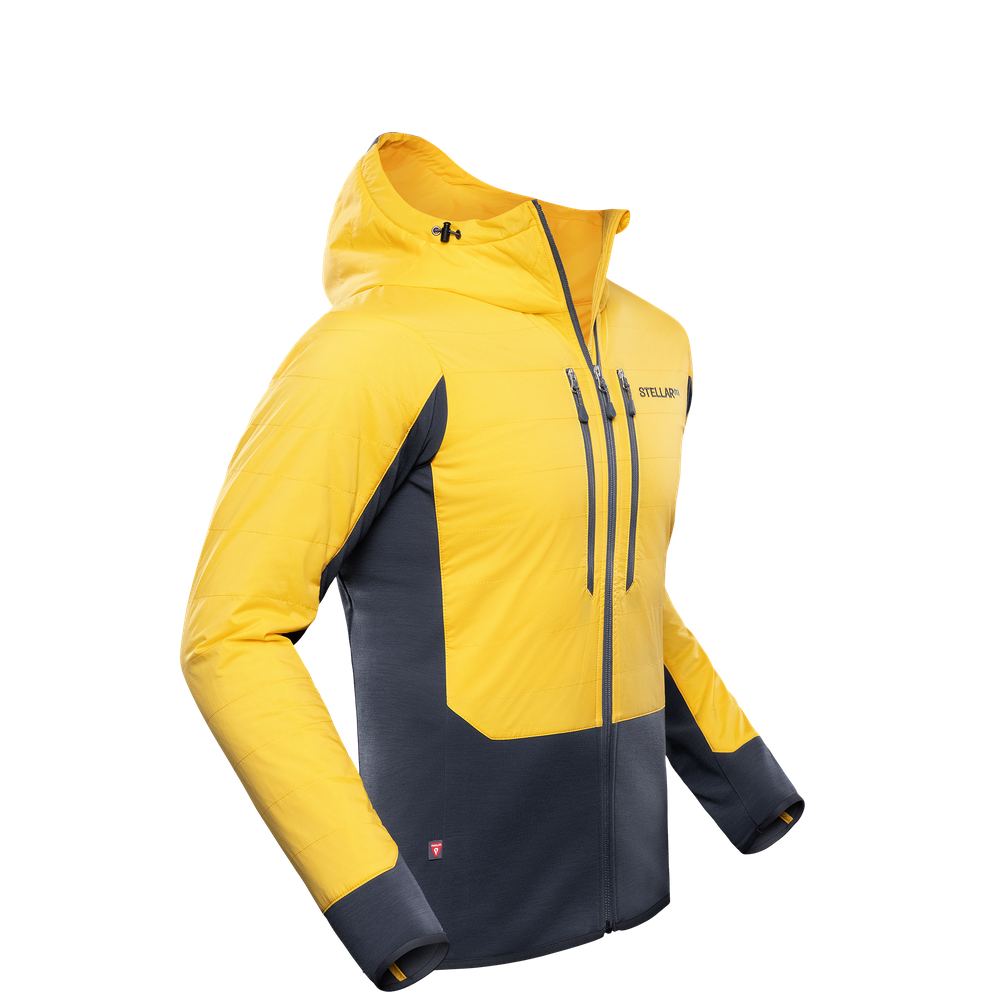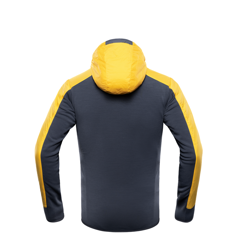 Perfecting one of our most avant-garde concepts, the upgraded Guide Aerogel Hybrid Hood 2.0 features insulation fibers made from a material so incredibly light it is sometimes referred to as ‘frozen smoke’, boasting the highest insulation-to-weight properties known to man. We took this cutting-edge synthetic insulation, covered it in a new ultralight, stretchable and breathable Japanese shell fabric, and combined it with a comfortable and fast-wicking merino-wool blended fleece for a uniquely warm, technical and versatile mid-layer hoodie.